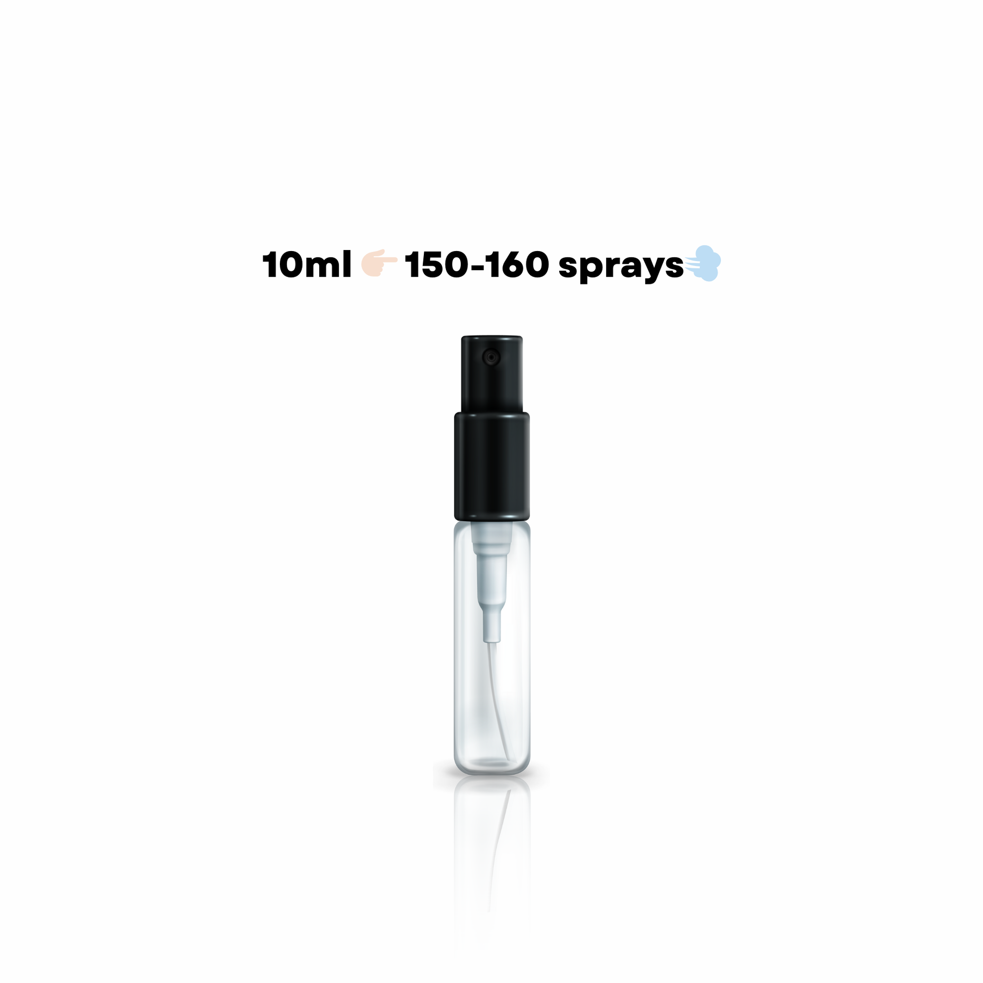 Presentación en decant de 10 ml con atomizador práctico, perfecto para probarla o llevarla contigo.